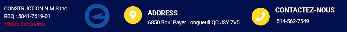 NMS ÉLECTRIQUE offre des services professionnels d’installation, de rénovation et de mise aux normes électriques. Notre équipe d'électriciens intervient rapidement et en toute sécurité, conformément aux exigences du RBQ et du Code canadien de l'électricité.
